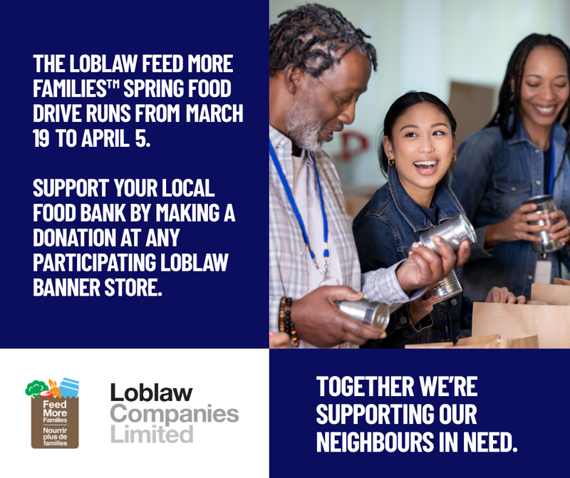 Loblaws is hosting their annual Spring Food Drive campaign from March 19 until April 5. This campaign raises essential donations in support of the food bank network across Canada!